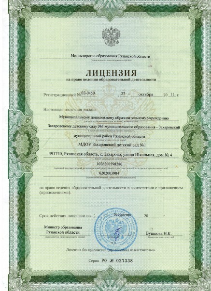 | Полное наименование образовательной организации* | Муниципальное дошкольное образовательное учреждение Захаровский детский сад №1 муниципального образования -Захаровский муниципальный район Рязанской области |